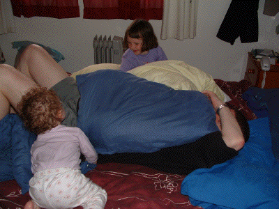 Lucy and Mindy trying to 'get' Daddy