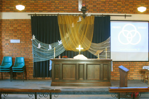 12. For quite a long time, we included the words of all the songs in the service sheets and the screen displays. This was mainly because we didn't have a congregational hymn book which contained the words of all the songs we wanted to use - indeed, as we used a very wide variety of material, there was probably no such song book available. In 2009, we finally acquired a set of congregational song books ( "Complete Anglican hymns old and new )which covered the whole range we wanted well enough to suit our purpose, and, from October 2009, we used these books instead. The words of the songs are therefore omitted from the services here from that time onward.