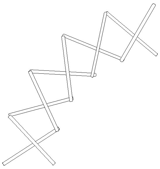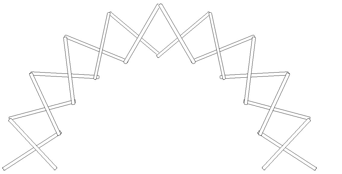The major structure is the building's "facade", which is constructed from two collapsible clothes driers, each designed to open into a quarter-circle, and joined together to form a semicircle :